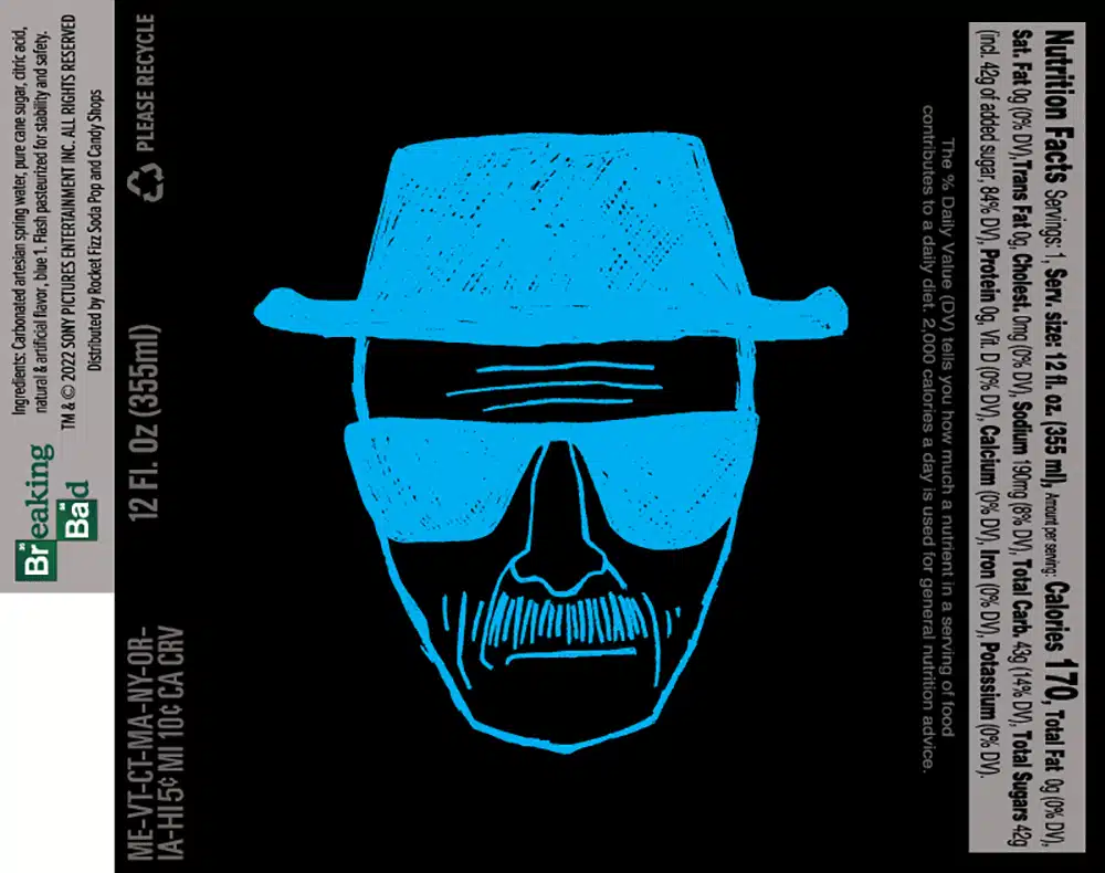 Carbonated artesian spring water, pure cane sugar, citric acid, natural & artificial flavor, gum acacia, blue 1. No preservatives: flash pasteurized for stability and safety.